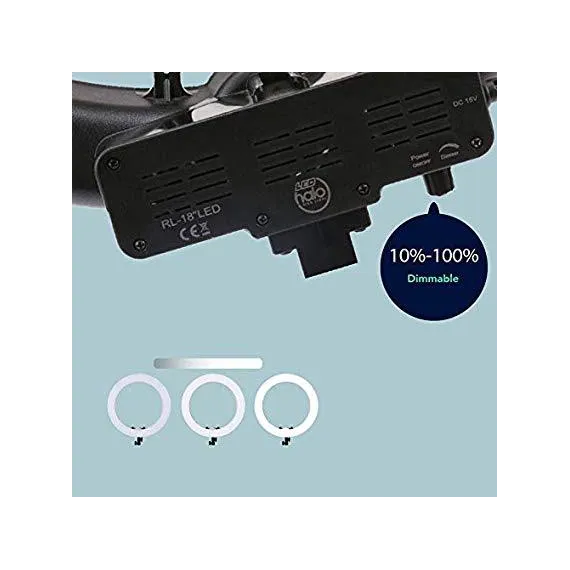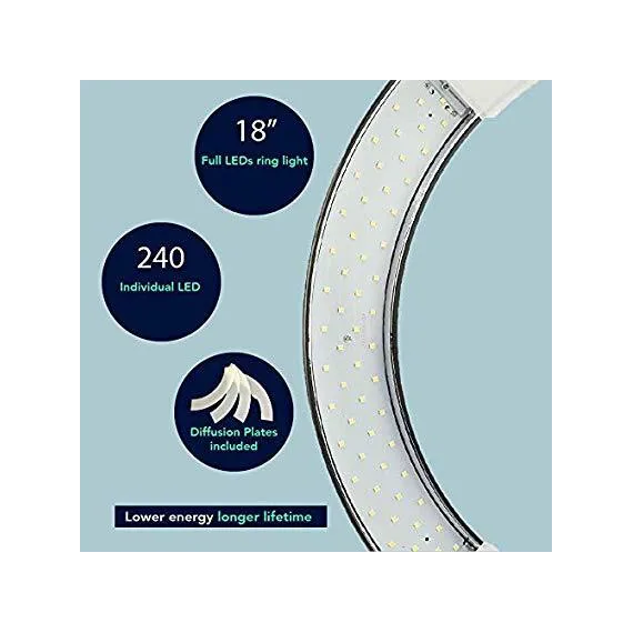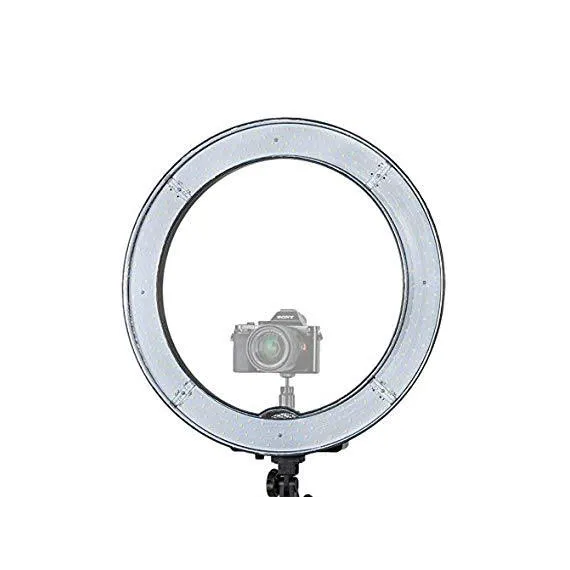 Prismatic 18" Halo Ring Light LED Dimmable 55W 5500K, with 6' Aluminum Light Stand, Ballhead Mount for Camera, Carry Case, Diffusion Plates