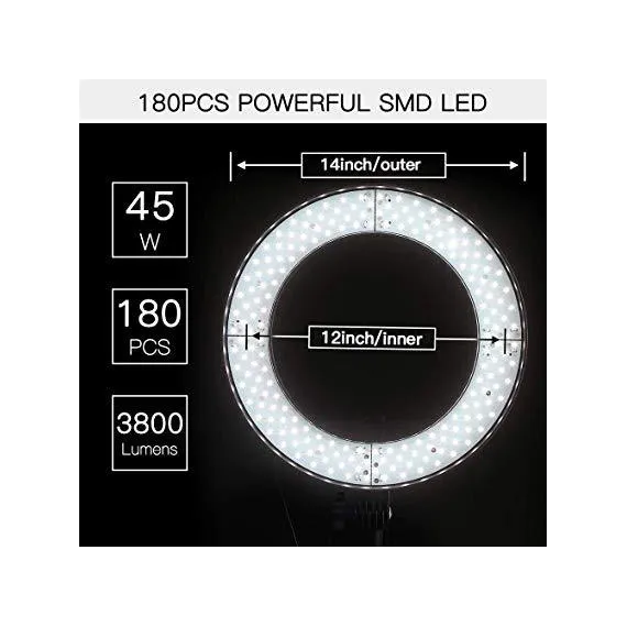 SAMTIAN LED Ring Light 14 inches Outer YouTube Light 180 Dimmable LED Lighting Kit with 2M Light Stand, Cradle Head, Phone Holder for Video Shooting, YouTube Video, Portraiture, Makeup