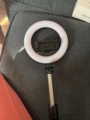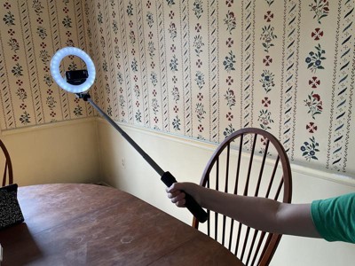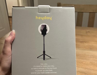 Capture your best moments with this versatile Tripod Selfie Stick with LED Ring Light in black from heyday™. Its extendable tripod reaches from 7.7 to 30 inches, ensuring you find the perfect angle. The added 6-inch adjustable LED ring light provides 3 color modes (Warm, Natural, and Cool), and within each color option, you can adjust the brightness level to Low, Medium or High. With a 33-foot range Bluetooth remote and a 1-year limited warranty, this selfie stick is your ultimate companion for stunning selfies and group shots.