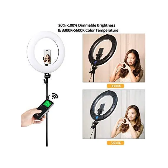 VILTROX Ring Light with Stand,18" LED Dimmable Fluorescent Ring Light, 45W Circle Light VL-600T for Photography Video YouTube Vimeo Portrait Lighting Live Streaming, with Remoter