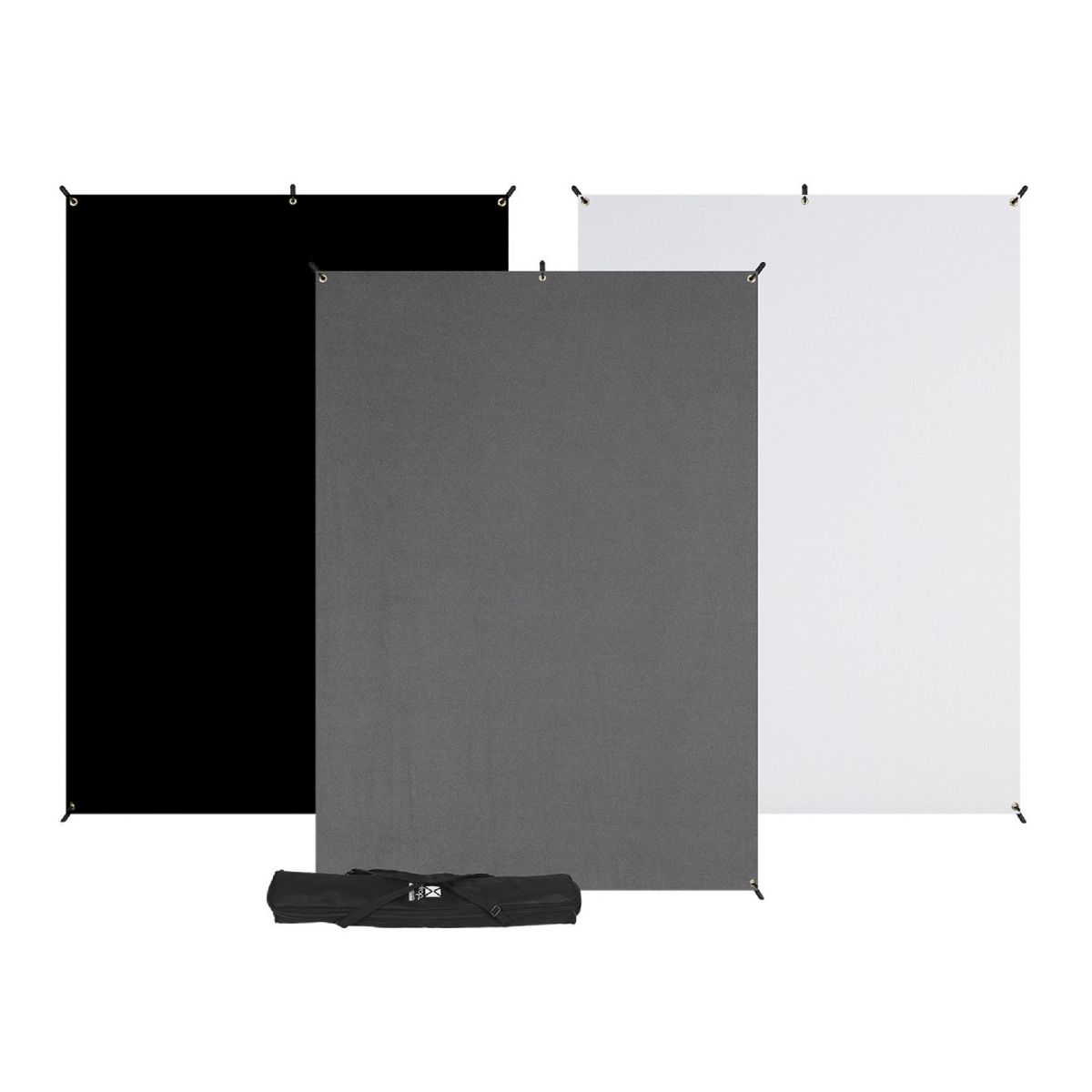 Say goodbye to high-maintenance paper backdrops for good. These machine washable backdrops are truly wrinkle-resistant when stretched taut, allowing for a smooth, sweeping and seamless appearance. The 3-Pack Backdrop Kit bundles White, Black, and Gray 5 x 7-feet backgrounds into one kit that is easy to travel with and setup in minutes. Also included in the kit, is an X-Drop frame and a storage case for easy transportation. Reflection-Resistant Backgrounds The uniquely blended matte-polyester fabric is reflection-resistant for effortless lighting in the studio. X-Drop wrinkle-resistant backdrops are constructed with an innovative fabric that provides a multitude of benefits. Whether you are shooting high-end editorials or high school seniors, wrinkle-resistant backdrops will withstand whatever shooting situation you encounter.