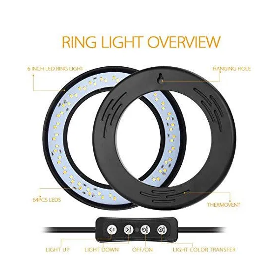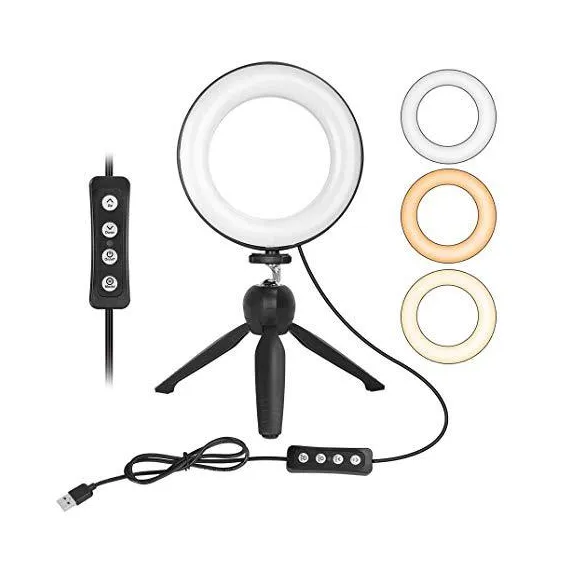 ZOMEI 6 inch Dimmable LED Ring Light with Stand for Live Stream Video Shooting Selfies, Mini Tabletop Ring Light with 3 Color Mode 11 Level Brightness