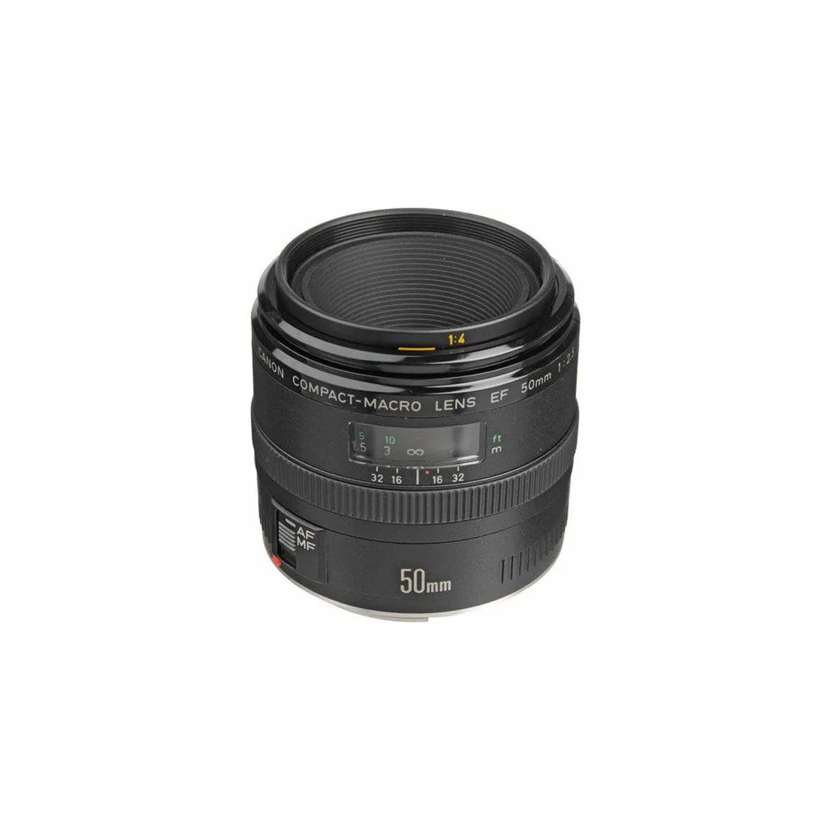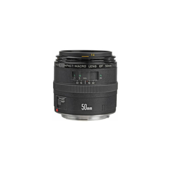 This EF 50mm f/2.5 Compact Macro Lens from Canon is a lightweight and compact 50mm macro lens for general-purpose standard focal length shooting and for close-up 1:2 half life size macro photography. A floating optical system enables sharp delineation at all focusing distances. With a large f/2.5 maximum aperture, the lens is effective in low light and provides shallow depth offield and its truly circular 6-blade diaphragm offers beautiful background blur. An optional Life Size Converter EF enables focusing to a true macro 1:1 reproduction ratio.