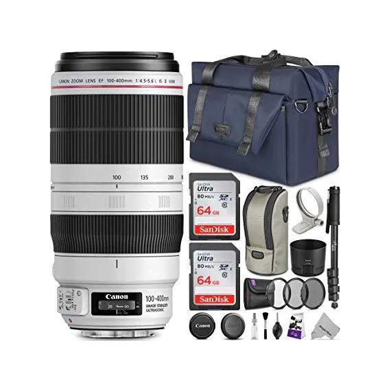 Canon EF 100-400mm f/4.5-5.6L is II USM Lens w/Advanced Photo and Travel Bundle - Includes: Altura Photo Bag, UV-CPL-ND4, Monopod and 2pcs SanDisk 64gb SD Card