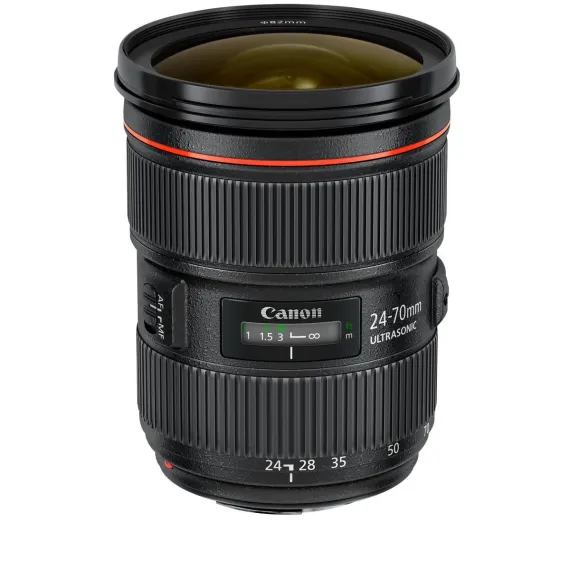 The Canon EF 24-70mm standard zoom lens does what many pros thought couldn't be done--it replaces the L-series 28-70mm f/2.8 lens with something even better. The lens offers extended coverage to an ultra-wide-angle 24mm, making it ideal for digital as well as film shooters. The new processing unit, meanwhile, makes the autofocus (AF) faster than ever. And thanks to the two aspherical elements and a totally new UD glass element, the optics are far superior to the earlier lens. Sealed and gasketed against dust and moisture, the EF 24-70mm lens carries a one-year warranty.Focal length: 24-70mm Maximum aperture: 1:2.8 Lens construction: 16 elements in 13 groups Diagonal angle of view: 74 to 29 degrees Focus adjustment: Front-focusing method Closest focusing distance: 1.25 feet Zoom system: Rotating type Filter size: 77mm Dimensions: 3.3 inches in diameter, 4.9 inches long Weight: 2.1 pounds The Canon EF 24-70mm standard zoom lens does what many pros thought couldn't be done--it replaces the L-series 28-70mm f/2.8 lens with something even better. The lens offers extended coverage to an ultra-wide-angle 24mm, making it ideal for digital as well as film shooters. The new processing unit, meanwhile, makes the autofocus (AF) faster than ever. And thanks to the two aspherical elements and a totally new UD glass element, the optics are far superior to the earlier lens. Sealed and gasketed against dust and moisture, the EF 24-70mm lens carries a one-year warranty.Product DescriptionFilter size: 77 mm, Closest Focusing Distance: 1.25 feet.