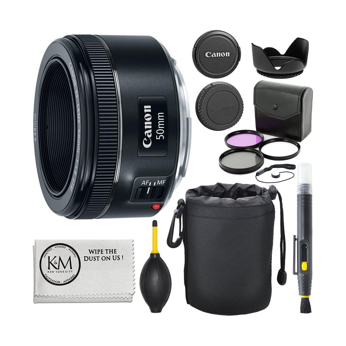 Canon EF 50mm f/1.8 STM Lens + 3pc Filter Kit + Lens Pen + Blower + Hood + Lens Pouch + Cap Keeper