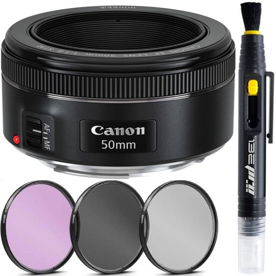 Canon EF 50mm f/1.8 STM Lens with 49mm Filter Kit (UV, CPL, FLD) & Cleaning Pen Package
