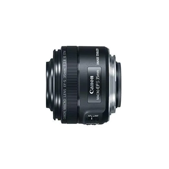The Canon EF-s 35mm f/2.8 Macro IS STM is optimized for macro photography and only fits Canon APS-C cameras like the EOS 80D and Rebel series. Here are my thoughts on this lens after a couple weeks of use: The reason to buy this lens over the excellent EF 40 2.8 STM or EF 35 3.0 is for the macro mode. Being able to quickly take a tight closeup of a tiny flower, coin or insect is great. However, realize at 1:1 the front element is only about one inch from the subject. That’s okay for inanimate objects but not wee moving critters. Also, a one inch working distance blocks most ambient light, so the integral LED ring light is essential. The LED light, activated with a button on the barrel, is handy albeit only bright enough for a macro subject a few inches from the lens. You’ll still need stronger external illumination once beyond the high magnification macro range. BUILD: Although lightweight—190g—construction seems reasonably robust: sturdy plastics in barrel and metal mount. For a 1.0x macro lens it’s compact but considerably larger than an EF 40 2.8 STM. Focus distance and depth of field marks are absent from this lens. A quasi lens hood is provided, the ES-27, but is silly small. It’s sturdy aluminum but more of a fat 49mm filter adapter. I’d rather have a normal sized twist-on hood but at least a hood was provided. IMAGE QUALITY: Wide open its sharp and vivid but oh so slightly soft in the corners. Bokeh is pleasantly smooth in defocused areas. By F4.0 it’s pin sharp across the frame. It’s surprisingly flare resistant and landscapes with prominent horizons and/or vertical lines have no noticeable distortion. In short, image quality is very good open wide and excellent a stop down. AUTO FOCUS is peppy for a macro lens but slower than typical USM zoom. Most significantly, AF is accurate and rarely misses on my 80D. Focus is buttery smooth and great for touchscreen pulls during video. The focus motor is inaudible to my ears. Like other STM lenses, manual focus is "focus-by-wire"; i.e., the MF ring activates the focus motor but isn’t mechanically coupled to the lens. MF is only active when the shutter button is half-depressed. The MF ring is small but grippy and a lot better than the MF ring on my EF 40 2.8 STM. IMAGE STABILIZER (IS) yields about three stops of additional hand holdable range for normal photography. IS is quiet and isnt audible on video when using built-in mics. However, unless you can brace you hand on something, most photographers will need to use a tripod when at full macro magnification. FINAL BLURB: I want excellent image quality in an easy to carry package. And the EF-s 35mm f/2.8 Macro IS STM hits that mark, making it a great lens for macro on my 80D. While it works fine for general photography it isn’t especially fast nor can it zoom. So if you’re not into macro, this lens is not for you. I found it a dream for quick photos of small flat objects—coins, documents and art work—as there is virtually no distortion in both macro and normal ranges and the IS allows sharp images without busting out my tripod all the time. All in all a wonderful lens for macro loving photgraphers.