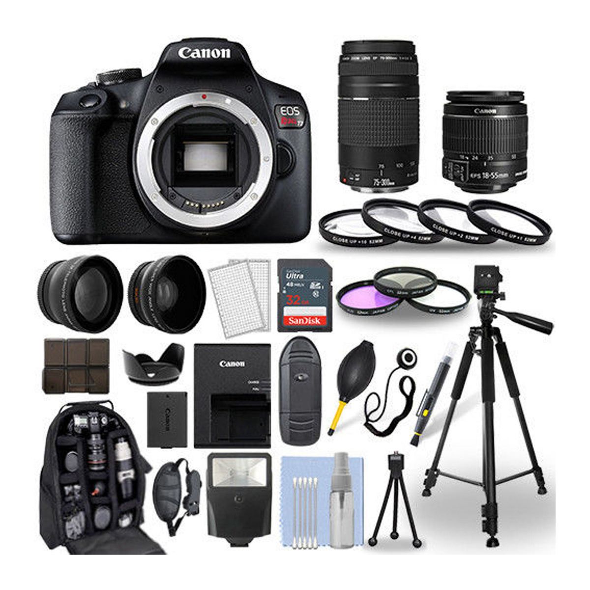 Canon EOS Rebel T7/2000D DSLR Camera with 18-55mm Lens | 75-300mm | 30 Piece Accessory Bundle USA