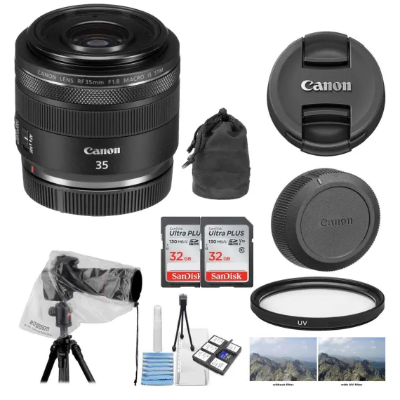 Canon RF 35mm f/1.8 IS Macro STM with LensRain Cover | Cleaning Kit & UV Filter Package