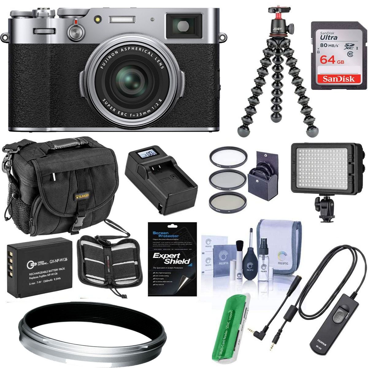 FUJIFILM X100V Digital Camera (Silver) with Sandisk 64GB Memory Card Essential Bundle
