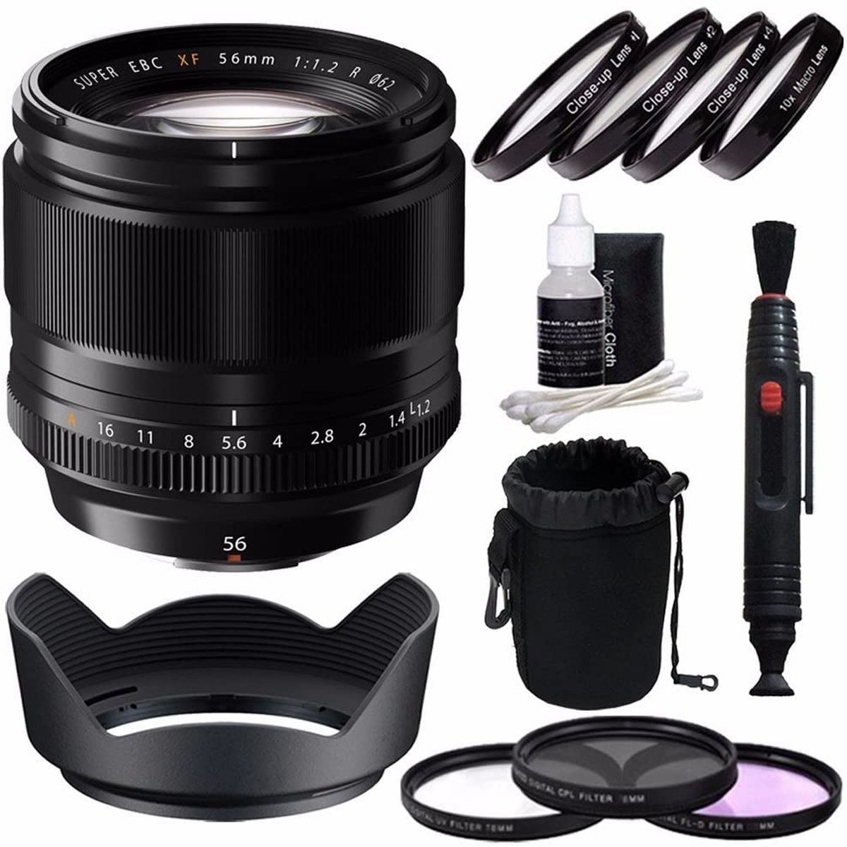 Fujifilm XF 56mm f/1.2 R Lens with 62mm 3 Piece Filter Set (UV, CPL, FL) | 62mm +1 +2 +4 +10 Close-Up Macro Filter Set Bundle