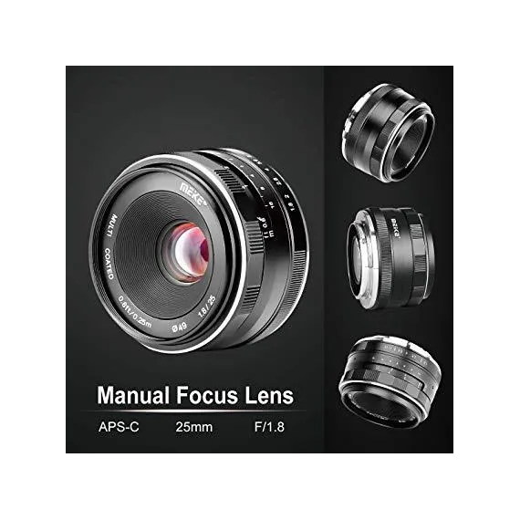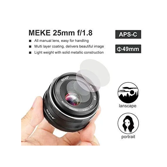 Meike MK 25mm F1.8 Large Aperture Wide Angle Lens Manual Focus Lens for Sony E Mount Mirrorless Cameras A7III A9 NEX 3 3N 5 NEX 5T NEX 5R NEX 6 7 A6400 A5000 A5100 A6000 A6100 A6300 A6500