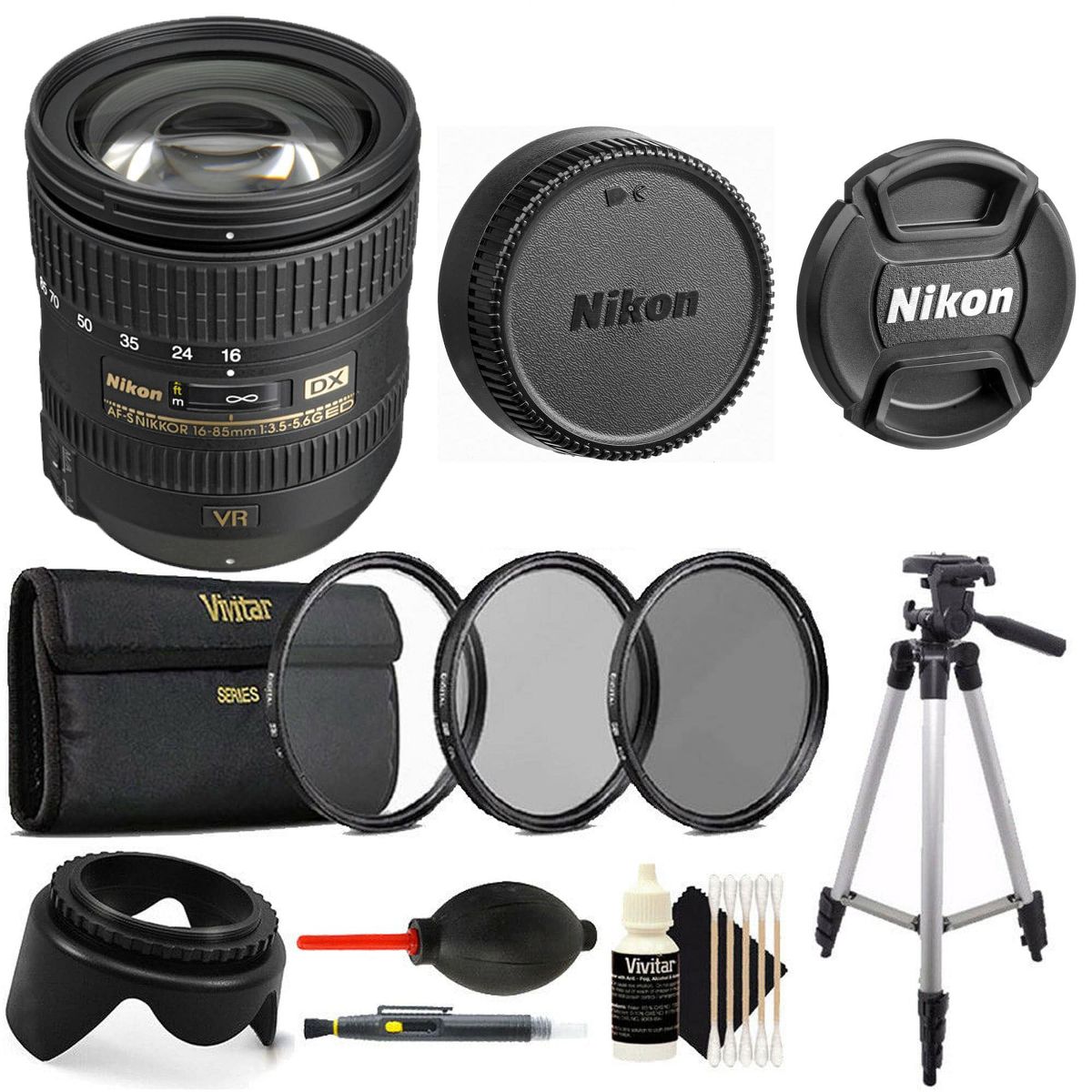 Nikon AF-S DX NIKKOR 16-85mm f/3.5-5.6G ED VR Lens Tripod Bundle