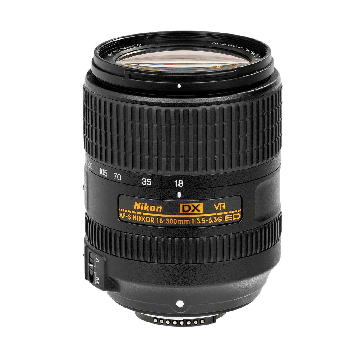 The Nikon AF-S DX NIKKOR 18-300mm f/3.5-6.3G ED VR Lens is an all-in-one zoom lens capable of shooting wide angle to super telephoto focal lengths. This lens has a zoom range of 18-300mm, equivalent to 27-450mm in a 35mm format, which makes it useful in a large range of shooting conditions.
