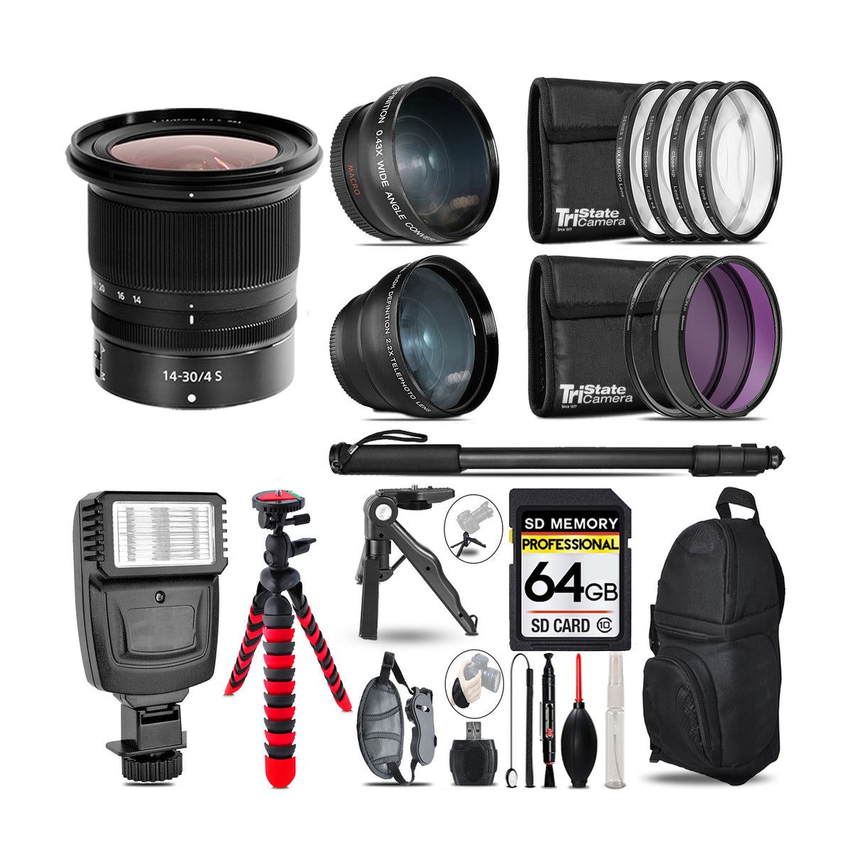 Nikon NIKKOR Z 14-30mm S Lens -3 Lens Kit + Slave Flash + Tripod - 64GB Kit