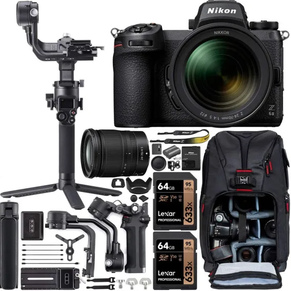 Nikon Z 6II Mirrorless Digital Camera w/ 24-70mm f/4 Lens Video Filmmaker's Kit , DJI RSC 2 Gimbal 3-Axis , Backpack Bundle