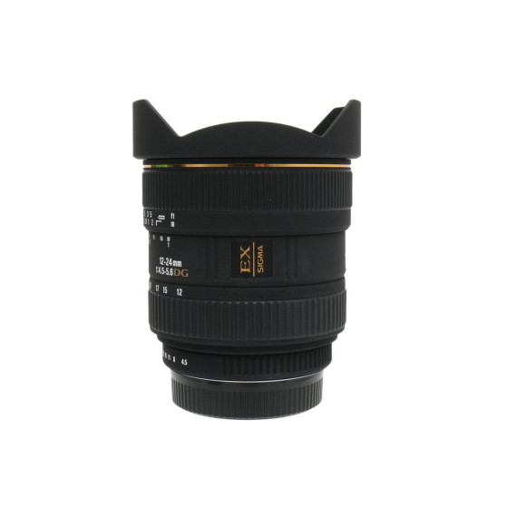 The Sigma 12-24 mm f/4.5-5.6 EX DG HSM is an ultra wide angle zoom lens optimized for full-frame DSLR systems. Its broad coverage from 12 mm gives dramatic perspectives while the optical formula with SLD and aspherical elements reduces distortion and maintains clarity. With a closest focusing distance of 0.28 m and a non-rotating front setup, it suits architectural and landscape work. The lens includes a built-in petal hood and accepts rear gelatin filters. Ideal for creatives needing extreme wide perspectives without excessive bulk.