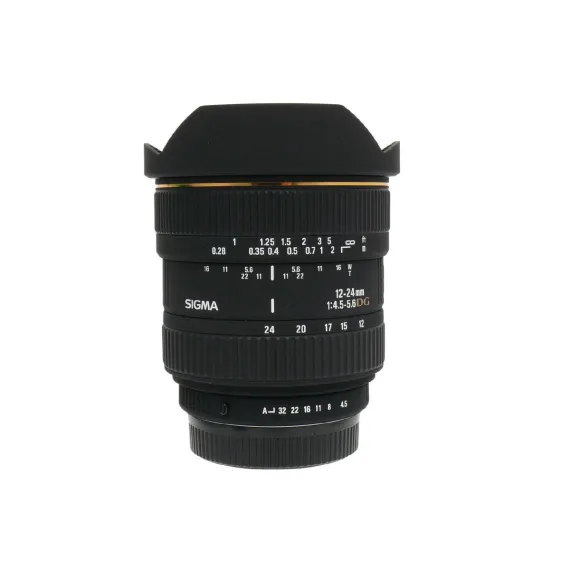 The Sigma 12-24 mm f/4.5-5.6 EX DG HSM is an ultra wide angle zoom lens optimized for full-frame DSLR systems. Its broad coverage from 12 mm gives dramatic perspectives while the optical formula with SLD and aspherical elements reduces distortion and maintains clarity. With a closest focusing distance of 0.28 m and a non-rotating front setup, it suits architectural and landscape work. The lens includes a built-in petal hood and accepts rear gelatin filters. Ideal for creatives needing extreme wide perspectives without excessive bulk.