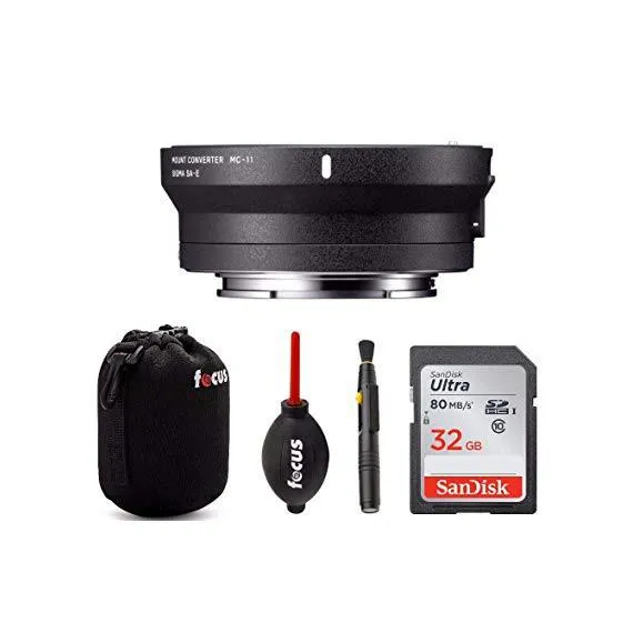 Make sure this fits by entering your model number. BUNDLE INCLUDES: Sigma MC-11 Lens Mount Converter (Canon EF to Sony E-Mount), SanDisk Ultra 32GB Memory Card, Small Neoprene Lens Pouch, Lens Pen Cleaning Tool, and Professional Dust Blower COMPATIBILITY: For use with Sony E-mount camera body only CONVERTS CANON EF-MOUNT to SONY E-MOUNT: It allows you to use your Canon EF-mount interchangeable lenses with the Sony E-mount camera body BUILT-IN LENS DATA: The converter incorporates all necessary data for the compatible lens, and uses a dedicated control program to optimize AF drive, aperture control, and other functions. It is compatible with functions of the camera that maintain peripheral brightness and correct transverse chromatic aberration, distortion, and more. SIGMA AUTHORIZED DEALER: Includes USA Manufacturer's Warranty