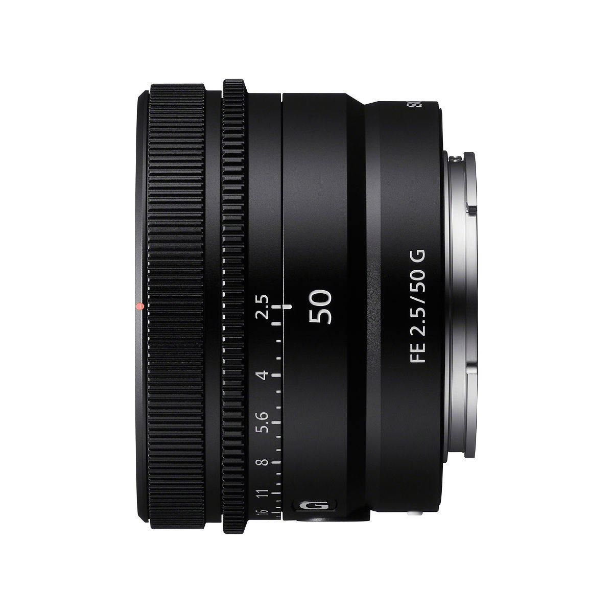 The FE 50mm f/2.5 G lens delivers high resolution and beautiful bokeh in an ultra-compact lightweight package, featuring aspherical lens elements for sharp detail across the entire image and an ED (Extra-low Dispersion) glass element to reduce chromatic aberration. This set contains Sony SEL50F25G FE 50mm f/2.5 G Full-Frame Ultra-Compact G Lens, Lens Hood (ALC-SH166), Lens Front Cap (ALC-F49S), and Lens Rear Cap (ALC-R1EM). Perfect for capturing every moment..