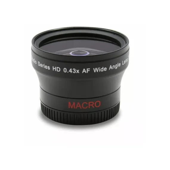 Anti-Reflection Multi-Coated Glass Sleek Active Design Steel Barrel Construction 0.43X Professional Wide Angle Lens Detachable Macro Lens for Extreme Close Ups High Definition Multi-Coated Japanese Optics Ultra Fast Auto Focus Design Infrared Compatible for Day & Night Shooting For HD Digital Camera & Video Recording Includes Protective Pouch, Front & Rear Lens Caps Uses 62mm Filter High Definition Multi-Coated / Auto Focus Designed for: 52mm Digital & Video camera lenses