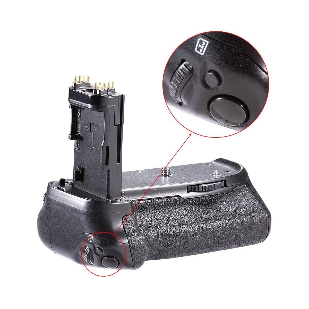 DUAL BATTERY SLOTS: Allows for the use of 2 LP-E6/LP-E6N Lithium Batteries effectively doubling shooting time without stopping to swap batteries.