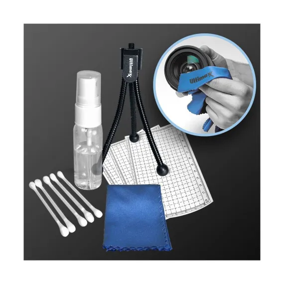 Ultimax Starter Kit Designed For DSLR & Video Camera Includes: – Cleaning Cloth. – 5 PCS Cotton Swabs. – Lens Cleaning Fluid. – 3 Universal Screen Protectors. – Mini Tabletop Tripod. – Designed for ALL Digital SLR & Video Cameras. A must have accessory for keeping all your lenses, filters & photographic equipment clean and in perfect working condition.