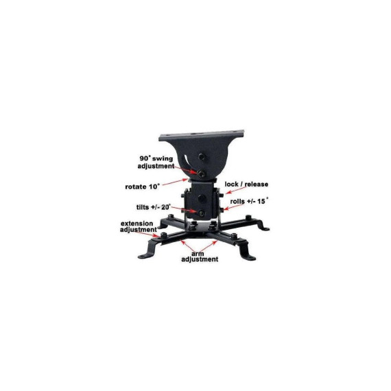 - Standard hardware required to fasten the mount to your ceiling and your projector included