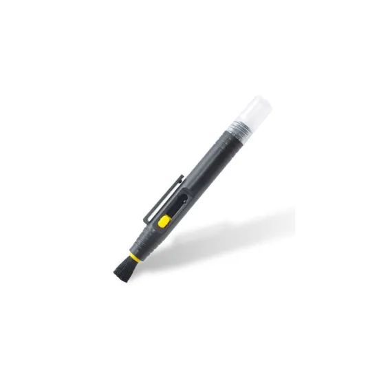 -The small pen style design easily fits in your pocket or camera bag. It features a retractable brush on one end and a spray cleaner on the other end.