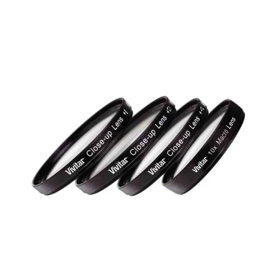 A simple and convenient method for shortening your minimum focusing distance and minimum working distance, this Close Up Macro Lens Kit from Vivitar fits lenses with 55mm filter threads, and enables you to photograph close-up subjects more effectively. This kit is comprised of +1, +2, +4, and +10 dioptric strength lenses, and also includes a protective filter wallet for storage or travel. Each of the lenses can be used to vary the degree of how much the minimum focusing distance of the lens is reduced, and the close-up lenses can also be combined for even greater magnification.