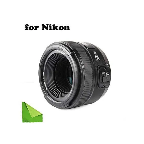 YONGNUO YN EF 50mm f/1.8 AF Lens YN50 Aperture Auto Focus for Nikon Cameras as AF-S 50mm 1.8G with EACHSHOT Cleaning Cloth