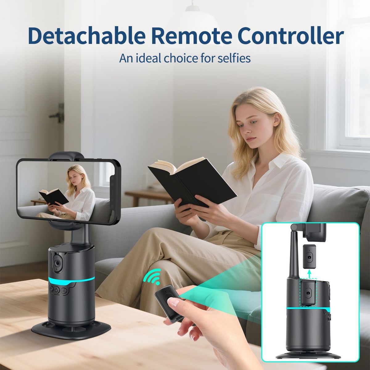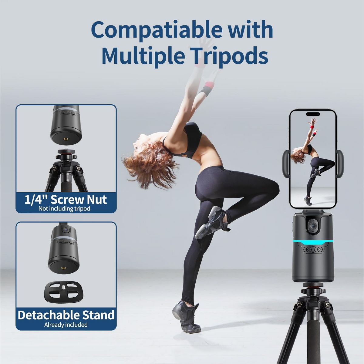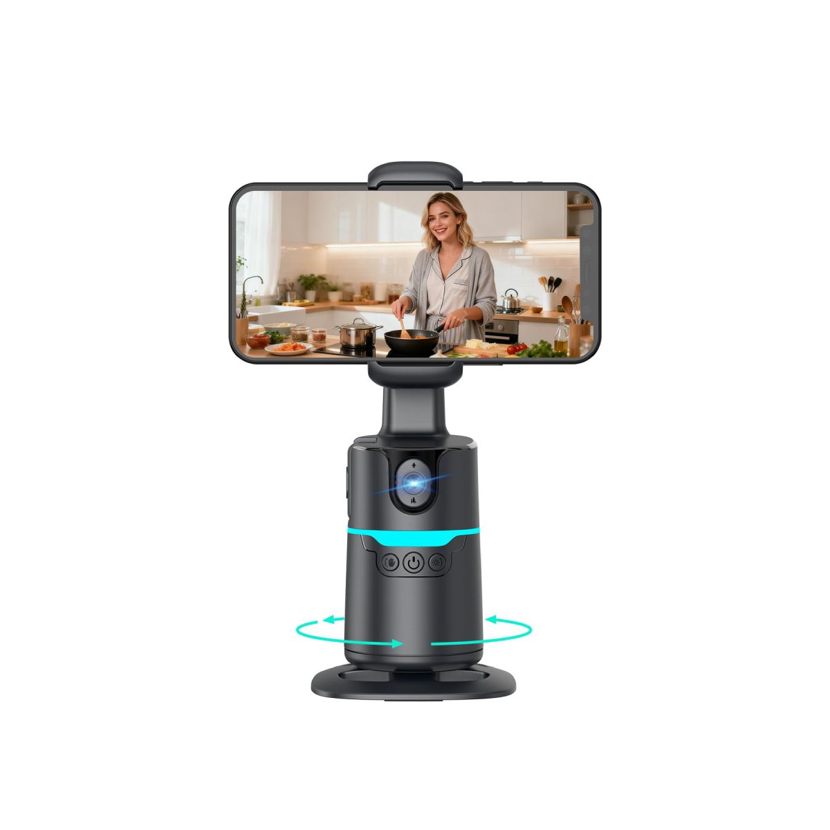 AI Auto-Track Phone Gimbal – 360° Rotation, Remote & Gesture, No App, 1/4" Tripod for Vlog, TikTok & Live