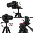 The adjustable height is achieved through telescoping legs and a geared center column, accommodating a wide range of shooting angles and perspectives. This feature makes it a versatile tripod for DSLR professional use, capable of adapting to various photographic requirements. Two built-in bubble levels guarantee that your camera tripod stand remains perfectly centered, even on uneven ground. For added stability, the tripod includes a counterweight hook where you can hang a sandbag or backpack.