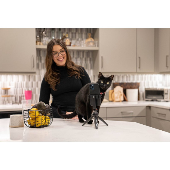 The HandyPod Creator Kit is the ideal tool for traveling and creating amazing content on the go. It provides flexible mounting for your smartphone, camera or GoPro thanks to the included accessories, has locking lever that securely holds your device in place while the in-built cold shoe mount enhances your creativity by hosting additional accessories such as lights or a microphone. The rubber touch points on the tripod legs ensure an excellent ergonomic grip for a comfortable and secure handheld shooting while the sturdy glass-filled composite construction makes HandyPod durable and sturdy when standing out.