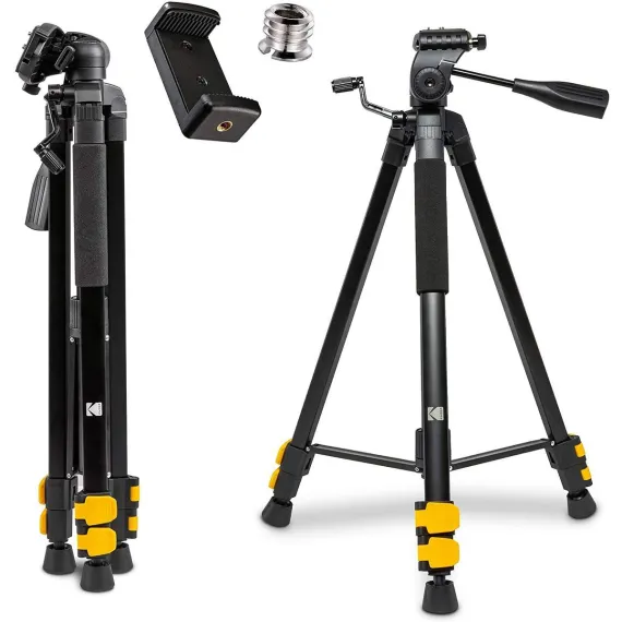 Get a distinctive angle for any picture using the 3-way head to tilt or pan your camera or phone. The adjustable, convenient design makes this camera tripod stand the perfect travel partner for any photographer, YouTuber, or vlogger. Set up this 3-section heavy duty tripod anywhere to get your perfect snapshot, then easily pack up and place it in your included carrying case. Use this durable, reliable camera stand tripod to take countless photos. Set up for the ideal picture at another event, trip, party, or landmark with this state-of-the-art compact tripod from Kodak.