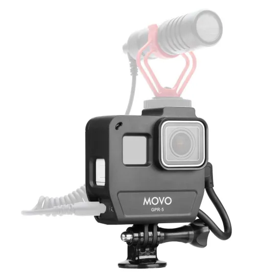 The Movo GPR-5 Media Housing GoPro Case is specifically designed for GoPro Hero 5, Hero 6, and Hero 7 series cameras, offering robust protection and enhanced functionality for action camera enthusiasts. This solidly constructed case safeguards your GoPro from potential damage while enabling the use of essential accessories. It accommodates the GoPro microphone adapter, making it ideal for those looking to improve their audio quality. Additionally, the case features a cold shoe mount on top, providing a secure attachment point for microphones, lights, or other equipment, enhancing your filming capabilities. The case also includes a tripod mount adapter, allowing for easy interfacing with various stands to increase the camera's stability during shoots. This feature is particularly useful for capturing steady, professional-grade video in dynamic environments. The Movo GPR-5 is not only protective but also highly functional, making it a valuable accessory for GoPro users looking to elevate their video production quality.
