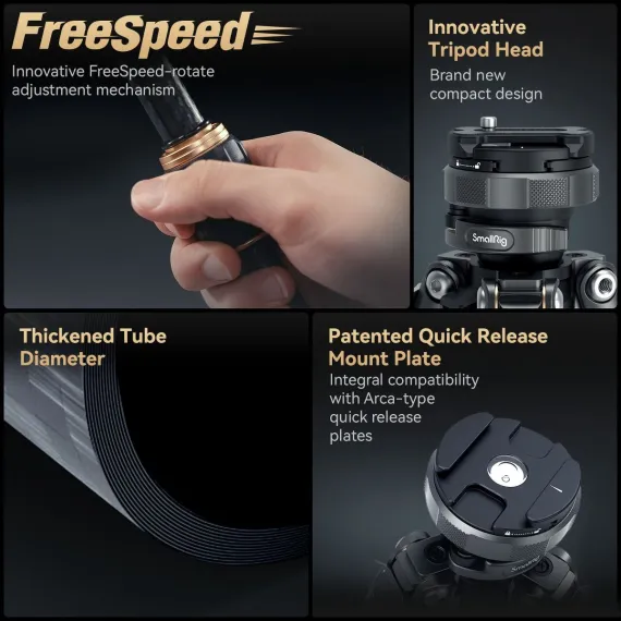 · One-Step Tightening & Quick Adjustment: The SmallRig AP-100 tripod features a FreeSpeed system for quick setup, locking all sections with a single knob, and offers a height range of 13cm to 150cm.