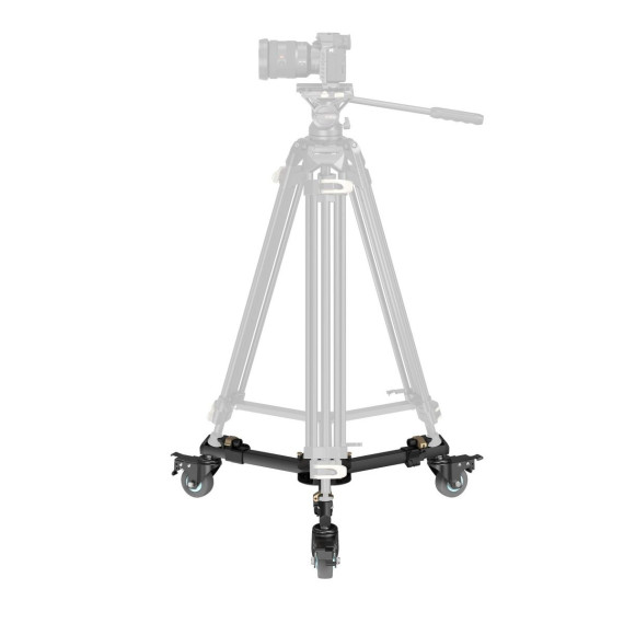 universal dolly designed for effortless maneuvering heavy duty tripods. With a load capacity of up to 20kg (44.1lb), it is compatible with tripods with an extension range from 280 to 450mm (11 to 17.7in). The newly designed quick-lock buckle ensures swift and secure tripod locking.