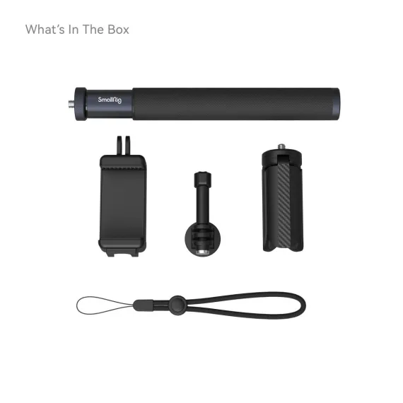 3.Rich accessories, including smartphone clamp, action camera mount, tripod, wrist strap, for multi-scene and multi-device shooting.