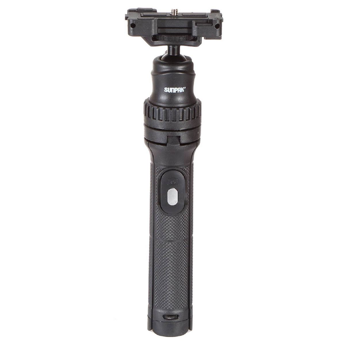The Sunak VersaPod is a combination tabletop tripod and handheld mount all in one. It has a fully telescopic 6-section column and foldable legs with non-marring rubber tips. When the legs are held together, it transforms into a handheld unit for portable usage or selfies. The Bluetooth remote integrated into the leg allows you to take pictures and videos with your Apple or Android smartphone up to 30 feet away. The kit is designed for compact cameras, smartphones and GoPro.