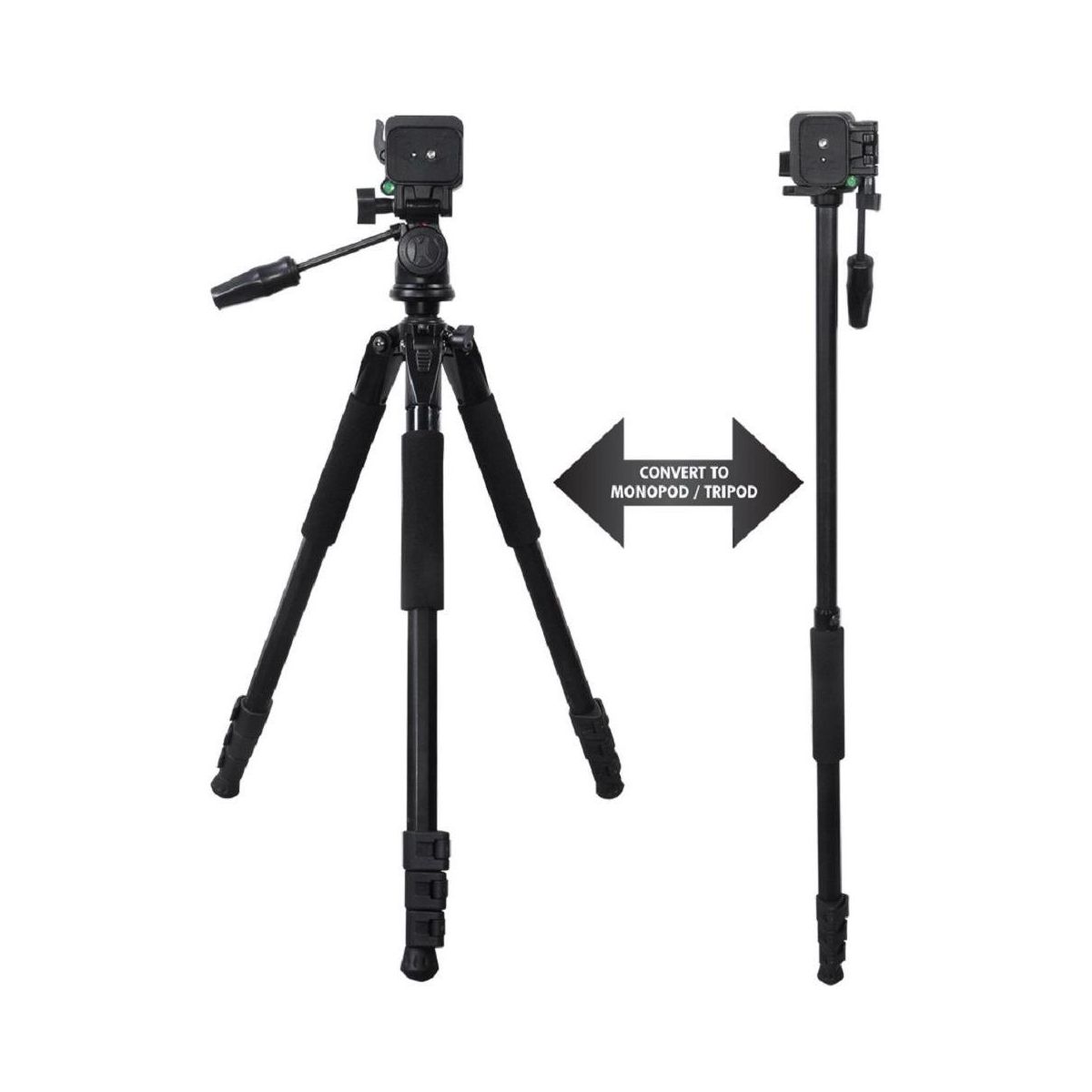 Easily & Simply Converts to a Monopod. 4 Section Lightweight. Low Angle Fully Adjustable Locking Legs. Non-Slip Rubber Feet. Quick Release Mounting Plate. 2 Built-in Bubble Level Indicators. Fully Adjustable Center Pole. Foam Padded Upper Legs. Retractable Stabilizing Center. 3-Way Ultra-Smooth Fluid Pan Head with Tilt Motion. Includes Convenient Carry Case. 80” Fully Opened / 26” Fully Closed.