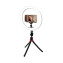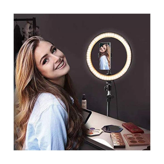 The 10-inch LED ring light provides soft, flattering light that helps reduce shadows and highlights facial features, making it ideal for live streaming, video calls, tutorials, selfies, and product shots. The included spider-style tripod offers flexible positioning and stable support on desks, tables, or floors, while the adjustable phone mount keeps your smartphone securely in place for hands-free recording.