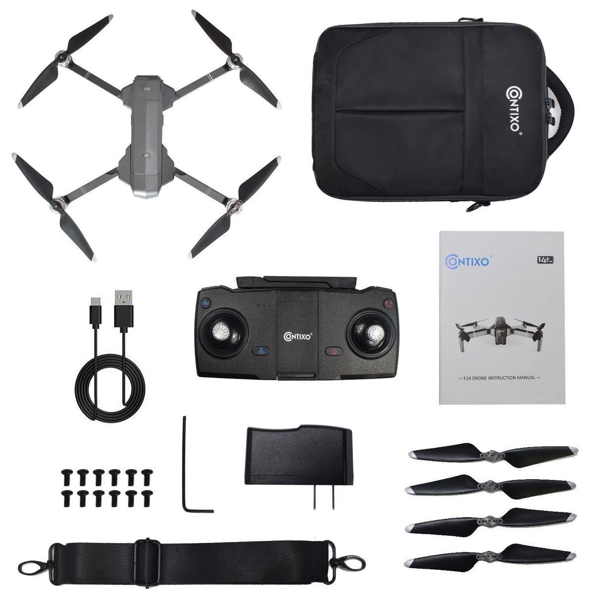 Take your aerial photography to the next level with the Contixo F24 Pro UHD Camera Drone. Designed for both beginners and seasoned pilots, this GPS-enabled drone delivers professional 4K Ultra HD image quality and advanced flight stability in a compact, foldable design. Equipped with a 4K camera featuring a 90° adjustable angle and 120° field of view, the F24 Pro captures stunning photos and videos with exceptional clarity, deep contrast, and vivid colors. A strong GPS signal ensures steady hovering, precise positioning, and a live video transmission range of up to 1,700 feet, so you can explore farther while staying connected. The powerful brushless motors provide smooth, quiet flights and improved efficiency, while the foldable arms make storage and transport simple—no need to remove the propellers. Smart flight modes like Follow Me, Orbit Mode, Gesture Control, Point of Interest, and Tap-to-Fly with up to 16 custom waypoints let you create cinematic shots with ease. Fly longer with the high-capacity 2500mAh intelligent battery, offering up to 30 minutes of flight per charge. The package includes an extra battery for a total of up to 60 minutes of air time, plus a durable carrying case for convenient travel. Whether you’re capturing breathtaking landscapes, recording family adventures, or enjoying an exciting hobby, the Contixo F24 Pro is the perfect 4K GPS drone for adults and aspiring young pilots alike.