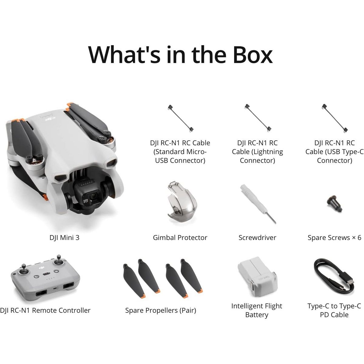 Capture stunning aerial photos and videos in a lightweight, travel-friendly design with the DJI Mini 3 Photography Drone and DJI RC-N1 Remote Controller Bundle. Weighing under 249 grams, the Mini 3 combines advanced imaging performance with easy portability, making it an ideal choice for beginners, travelers, and content creators looking for high-quality aerial footage without added complexity. The DJI Mini 3 features a capable camera designed to record 4K Ultra HD video and detailed still images, delivering clear visuals for landscapes, travel memories, and creative projects. With extended flight time of up to 38 minutes, you can spend more time capturing footage and less time managing battery changes. Built-in stabilization helps keep videos smooth and steady, even during movement. Designed with ease of use in mind, the Mini 3 offers intuitive flight controls and stable handling, making it approachable for new pilots while still providing creative flexibility for more experienced users. The included DJI RC-N1 remote controller delivers responsive control and a reliable connection when paired with a compatible smartphone, allowing you to monitor your flight and framing in real time. Compact, foldable, and built for outdoor use, the DJI Mini 3 is well suited for travel, outdoor exploration, and everyday aerial photography, offering a balance of performance, portability, and user-friendly design.