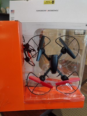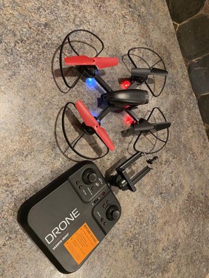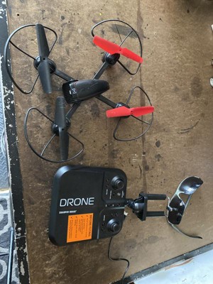 Capture stunning panoramic videos and photos of landscape, crowds, parties, and more with SHARPER IMAGE Mach X Video Drone! This beginner-friendly drone is the perfect co-pilot for getting that amazing bird's-eye-view footage you want. Glowing built-in LED lights make the stunts even more impressive, day or night. This impressive plane is packed with exciting features to make your flights even more enjoyable. Auto orientation flight control and gyro stabilization flight control keep the plane steady and help it climb up to 150 feet in the air. Safety landing pegs and the assisted landing feature ensure a soft landing when your flight is over. And removable blade guards keep your drone protected. The quadcopter includes a built-in 3.7V 550 mAh rechargeable lithium battery. When it runs out of juice, simply plug it in with the included USB charging cable and you'll be ready to hit the skies in no time. The remote takes 6 AA batteries (not included).