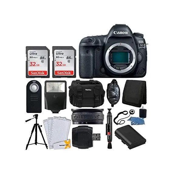 Canon EOS 5D Mark IV DSLR Camera Body + SanDisk 64GB Memory Card + Extra Battery + Wireless Remote + Large Gadget Bag + Slave Flash + Heavy Duty Tripod + Hand Grip + Lens Band + Card Reader - Bundle