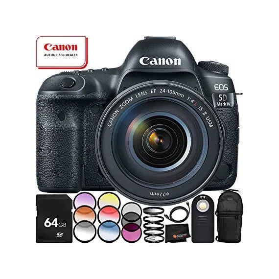 Canon EOS 5D Mark IV DSLR Camera with EF 24-105mm f/4L IS II USM Lens - 9PC Accessory Bundle Includes – Professional Sling Backpack + 64GB SD Memory Card + HDMI Cable + MORE