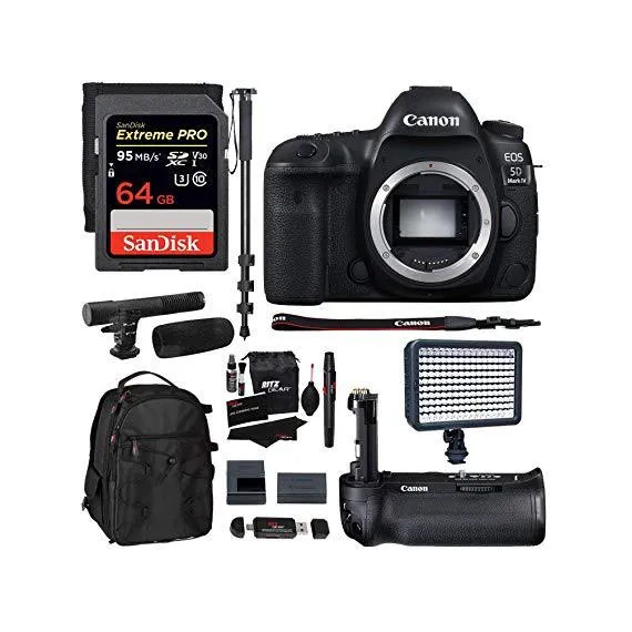 Canon EOS 5D Mark IV Full Frame Digital SLR Camera Body, Canon BG-E20 Grip, Sandisk Extreme 64GB U3 Card, Polaroid LED Video Light, Microphone, 72-inch Monopod, Ritz Gear Backpack & Accessory Bundle