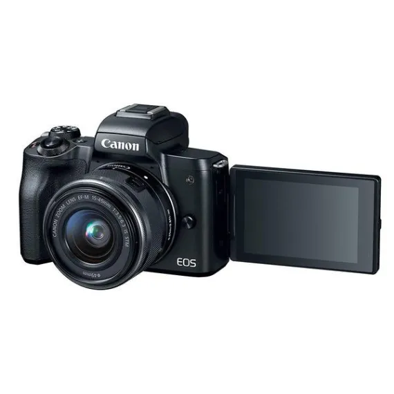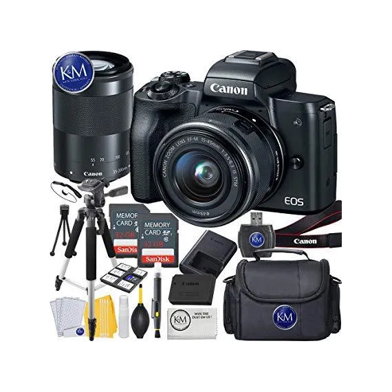 Canon EOS M50 Mirrorless Camera w/15-45mm and 55-200mm (Black) + 2 x 32GB + K&M Deluxe Photo Bundle